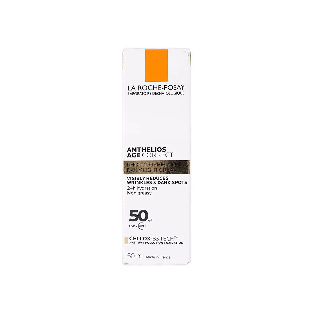 La Roche-Posay Anthelios Age Correct SPF 50 is a daily anti-aging sunscreen that combines high sun protection with skincare actives to visibly improve skin quality.